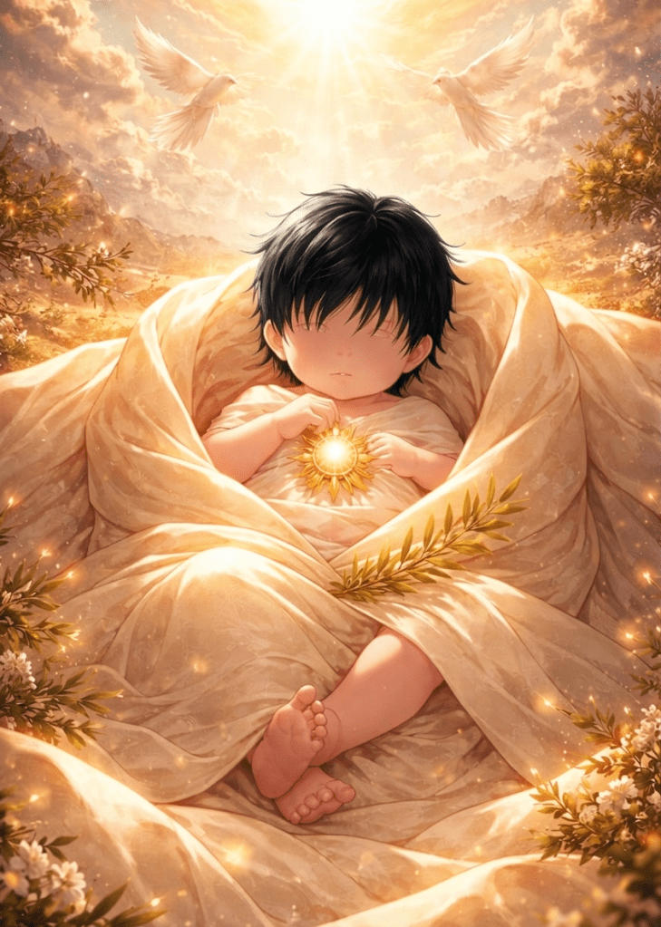 “A boy?” he whispered, smiling with teary eyes, gently taking the child. “He’s so small…”